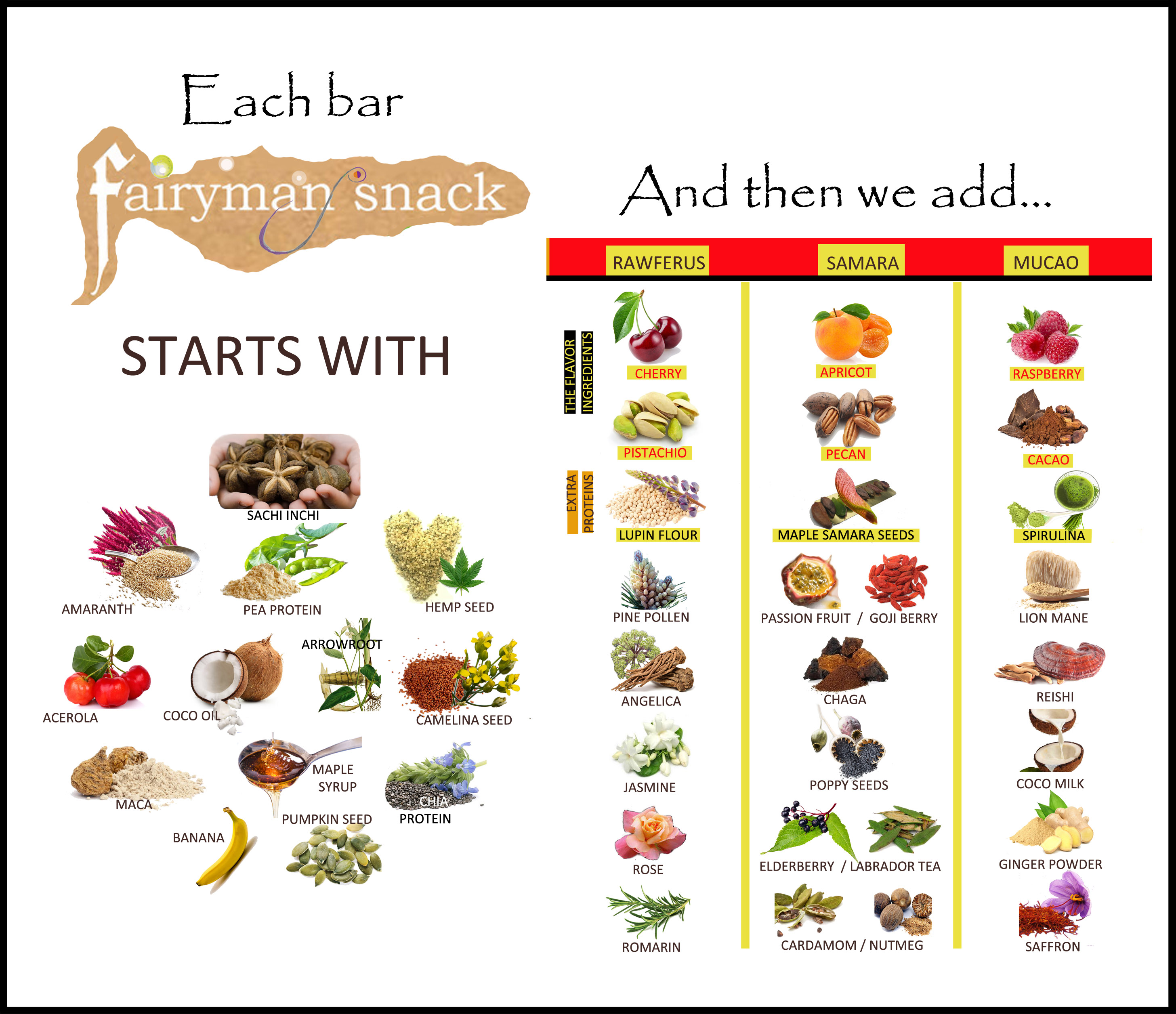 The protein sources of Fairyman snack bars are rare or never seen, such as maple samara, lupine and sacha inchi protein and chia protein.